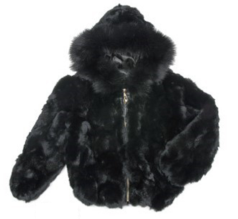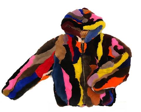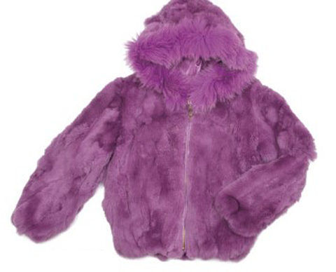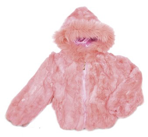 Kids Rabbit Fur Hooded Bomber Jacket - Melon Red