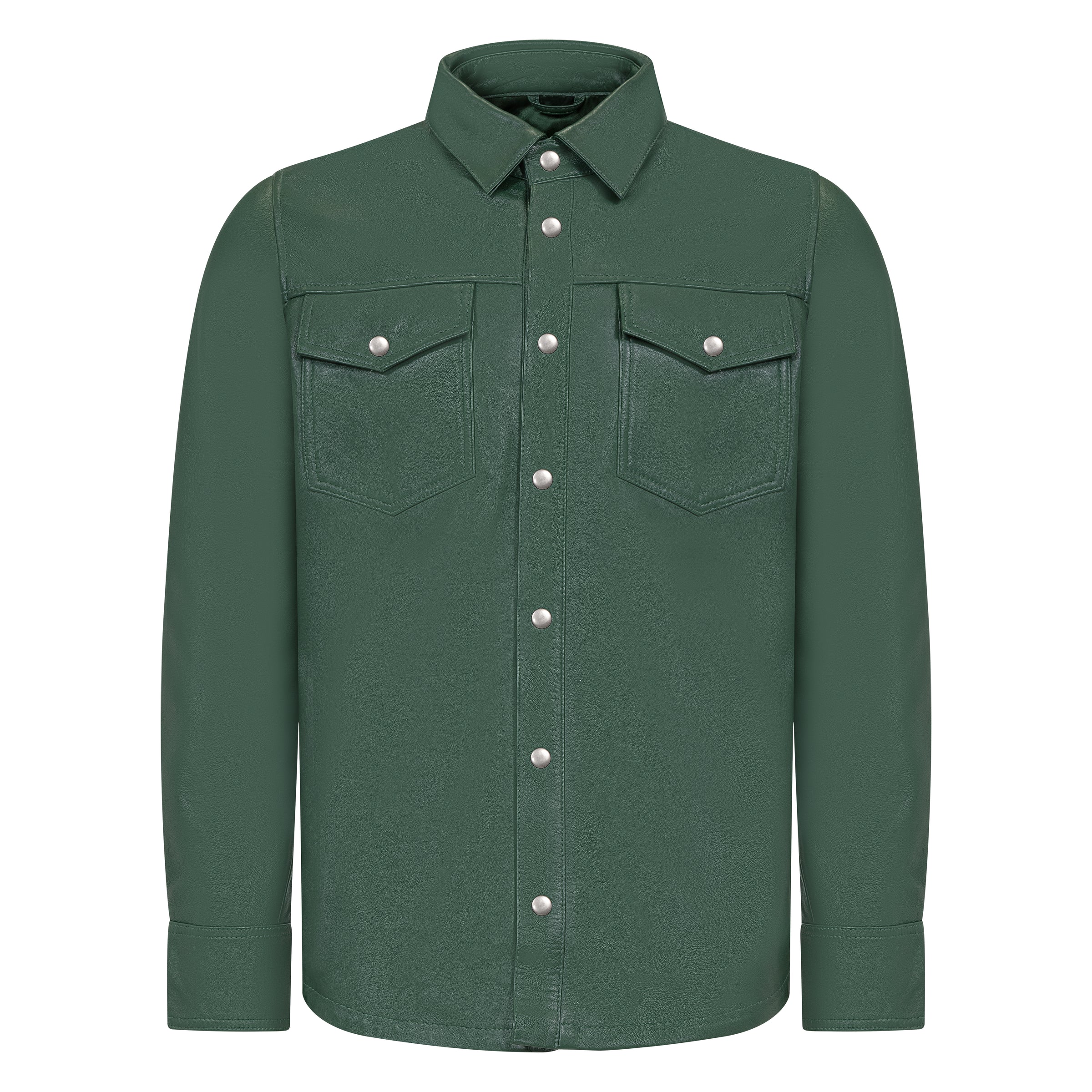 Men's Leather Shirt Genuine Lambskin Leather - Money Green