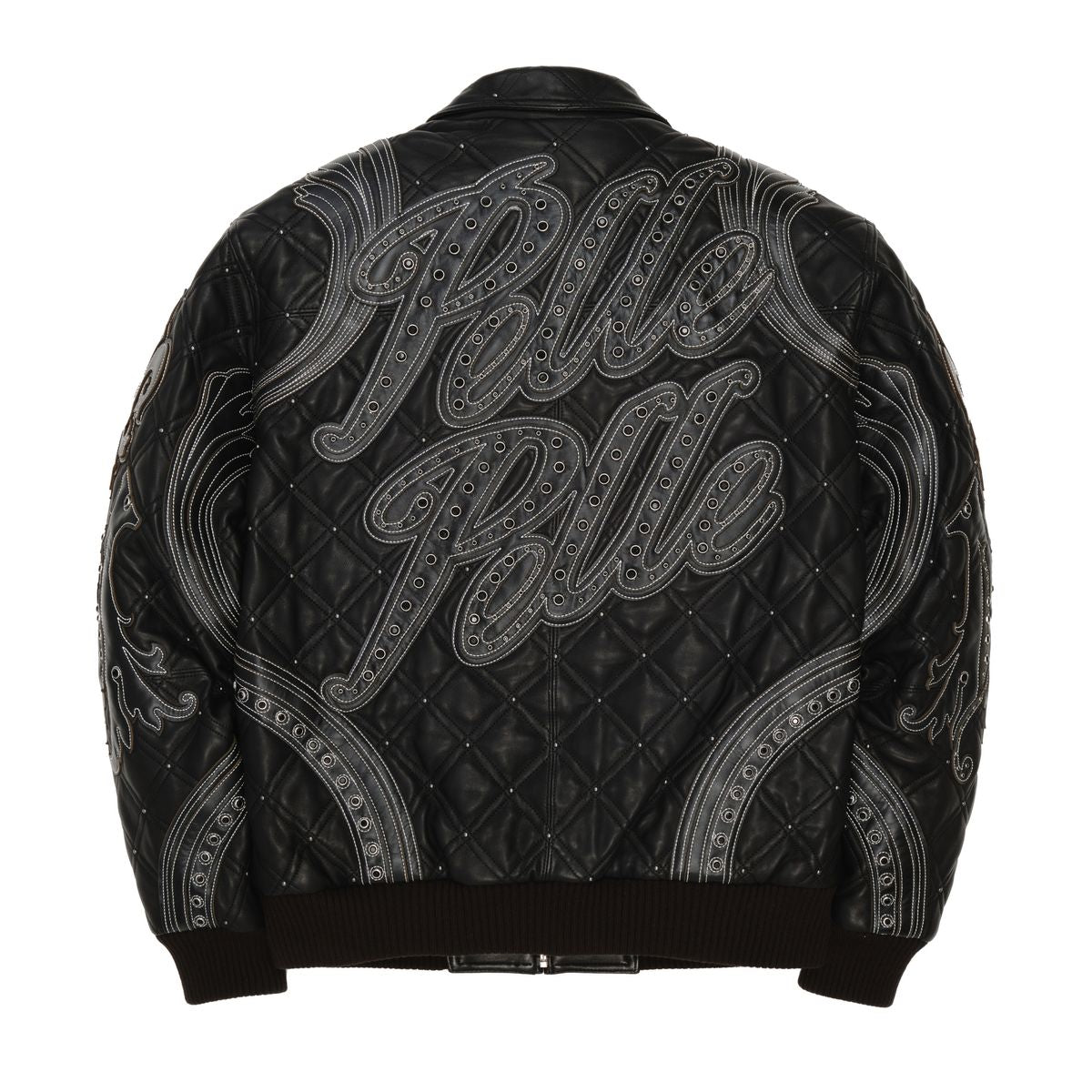 satin lining with outline direct embroidered pelle pelle